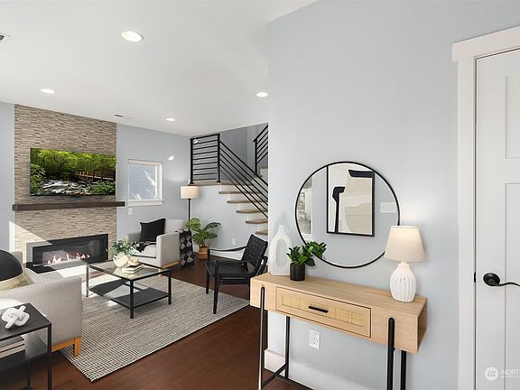 Discover this ideally located Greenlake home! The main floor features an open-concept layout with beautiful hardwood floors and a chef's kitchen, seamlessly connecting to a spacious back deck—perfect for entertaining. Upstairs, the primary suite offers a luxurious bathroom and a generous walk-in closet, along with two additional bedrooms, a full bathroom, and a convenient upper-level washer/dryer. The lower level includes garage access, a media room, an extra bedroom, a bathroom, and a laundry room. The driveway accommodates an additional car with remote gate access. With a 20-minute bus commute to SLU and steps from PCC, Greenlake Park, restaurants, and coffee shops, this home is perfect for modern living!