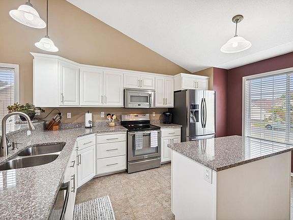 Updated throughout. This 4 bedroom, 3 bathroom home features an open main level with an updated island kitchen with granite countertops, stainless steel appliances, vaulted ceilings and real wood floors. The primary bedroom includes a private bath and walk-in closet. The extra wide stairs will take you to the giant family room w/ gas fireplace plus 2 additional bedrooms and beautifully tiled bathroom. You may enjoy the fenced backyard from either the deck or stamped concrete patio. The heated 3 car garage provides plenty of storage.