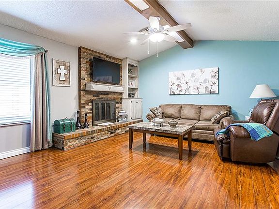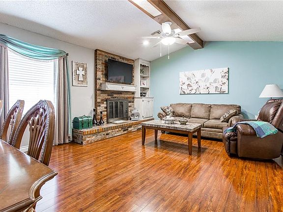 Here It Is! This is the move-in ready home you've been waiting for in Moore Schools. With so many updates this one will certainly be gone tomorrow! You'll love the fresh neutral paint colors & contemporary updates throughout. Kitchen is surrounded by designer-finish cabinets, smooth-top electric stove, built-in microwave, dishwasher, granite counters, & stainless steel sink. Spacious living room with rich wood flooring is crowned with cathedral ceiling, fireplace, built-in shelving, & easy access to the covered patio and deck in the privacy-fenced back yard. Master suite includes a private granite vanity & custom tile walk-in shower. Remodeled hall bath with extra-long vanity offers easy access to the ample size secondary bedrooms nearby. Other amenities include large interior laundry with storage, garage door lift, & slab ready for a storage shed in the back. Schools are so close & shopping just around the corner. Don't miss out, put this one first and end your search!