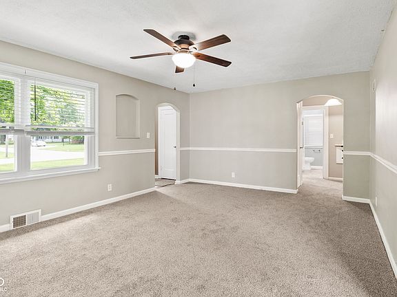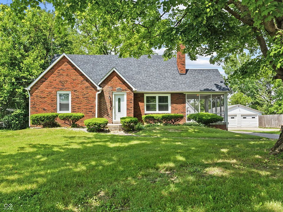 Welcome to this captivating 3 bedroom, 2 bathroom family home, nestled on nearly half an acre just minutes from Anderson University, Harrah's Hoosier Park Casino Racetrack, and the serene Shadyside Memorial Park Chinese Gardens. This property combines the tranquility of a spacious lot with the excitement of nearby attractions, making it an ideal place for both relaxation and entertainment. The home greets you with a cozy wood-burning fireplace in the living room, which seamlessly opens to a dining room featuring charming built-in bookshelves. Both the dining and kitchen areas are outfitted with durable laminate flooring, ensuring ease of maintenance. The galley kitchen boasts ample cabinet and countertop space, stainless steel appliances, and a delightful view over the backyard from the sink. This move-in-ready home has been meticulously updated with all new windows, a new roof, fresh paint, and new carpet throughout. The downstairs bathroom has also been beautifully renovated. A screened-in porch provides a peaceful retreat to enjoy the outdoors regardless of the weather. Offering a full, unfinished basement, there's ample opportunity for further expansion to tailor this home to your needs. The main floor also hosts a large secondary living space or potential 4th bedroom and the primary bedroom with convenient access to the renovated main bathroom. Upstairs, two additional bedrooms and a full bathroom complete this charming home. With a detached garage, an oversized driveway, and a basketball hoop, every aspect of this property has been optimized for comfort and enjoyment. Don't miss out on the chance to make this delightful house your new home! Schedule your in-person showing today to fully appreciate what this wonderful property has to offer. Photos have been virtually staged.