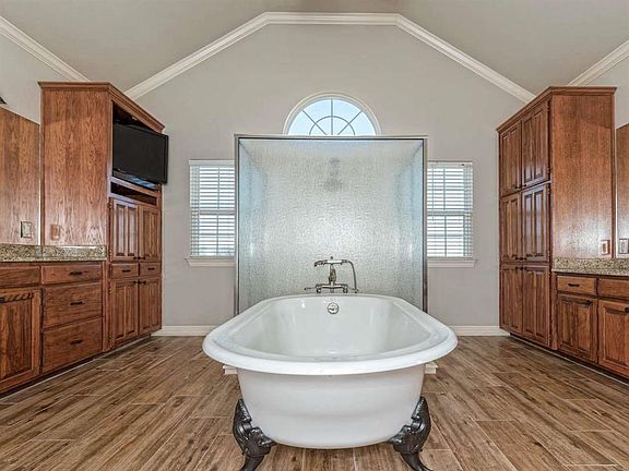 - MASTER BEDROOM: Isolated, Separate Tub, Dual Vanities, Separate Closets, Fireplace