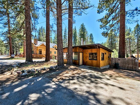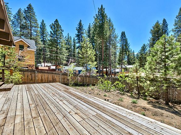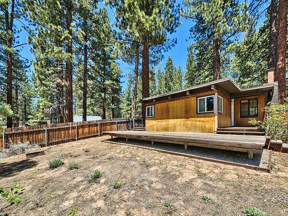 RUSTIC Tahoe cabin with tons of old-Tahoe charm featuring open beam ceilings, skylights, spacious kitchen, tiled stall shower, 13-year old Certainteed Flintlastic roof, 3-year old water heater, antique wood burning Richmond cooking stove in the kitchen, paved 2-car parking pad, three decks (including huge back deck), fully fenced back yard on a corner lot. Central location is close to all South Shore has to offer! Ebox on hose bib on the right side of the home.