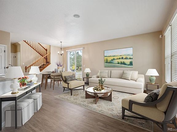 Welcome to this beautifully updated 3-bed, 3-bath home in the desirable Murphy Creek community! Step inside to discover an open floor plan featuring brand new luxury vinyl plank (LVP) flooring throughout the main level and plush new carpet on the upper level. The modernized kitchen, complete with new stainless steel appliances, 42" cabinetry, and a pantry provides plenty of room for meal prep and cooking. The kitchen opens to the large dining area and spacious family room. Also on the main level is a powder room and laundry area. Upstairs, the sizable primary suite offers a huge walk-in closet and an en-suite bath with double sinks. Two additional bedrooms are generously sized, providing flexibility for guests, a home office, or family needs. There is also a large loft and another full bathroom. Outside, enjoy your lovely side yard. This home is part of the Murphy Creek Golf Community with Swimming Pool, Tennis Courts, Restaurant as well as miles of walking and biking trails. Murphy Creek K-8 School is within walking distance. Just minutes away from Southlands Mall on Smokey Hill and Gun Club Road. Murphy Creek is conveniently located within 16 miles to Denver International Airport (DIA) and 13 miles from the Denver Technology Center. This move-in-ready home combines style, comfort, and convenience, all in one stunning package! Don’t miss out—schedule a showing today!