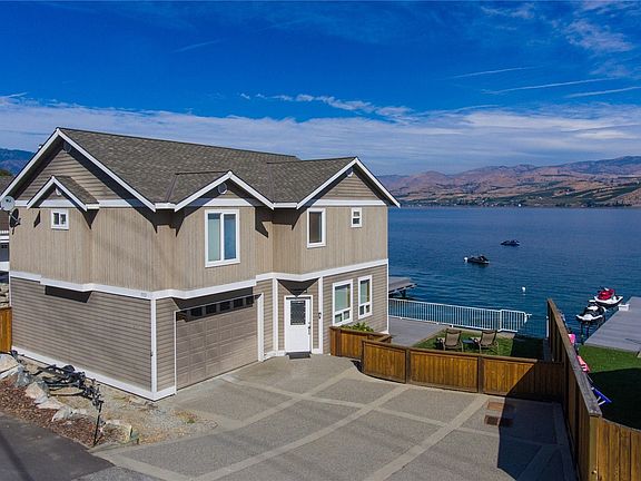 Welcome to 1112 S Lakeshore Rd! Charming Waterfront Home along the Golden Mile of Lake Chelan's South Shore! Home is sitting just steps from Lake Chelan w/ approx 75ft of concrete bulkhead waterfront, private dock, boat lift, jet ski lift, & buoys. This cute & clean home has a nice sized fenced in yard, good amount of parking plus garage, & offers simple lakefront living! Inside find a well kept home coming fully furnished turn key w/ nice sized great room & kitchen, & upstairs 3 bedroom suites! There are lots of windows & light, vaulted ceilings, & seamless connectivity to the lake! Recent updates include good amount of siding, all exterior paint, new front door, & 9 new windows replaced. (Photos are a few yrs old, new ones to come).