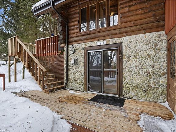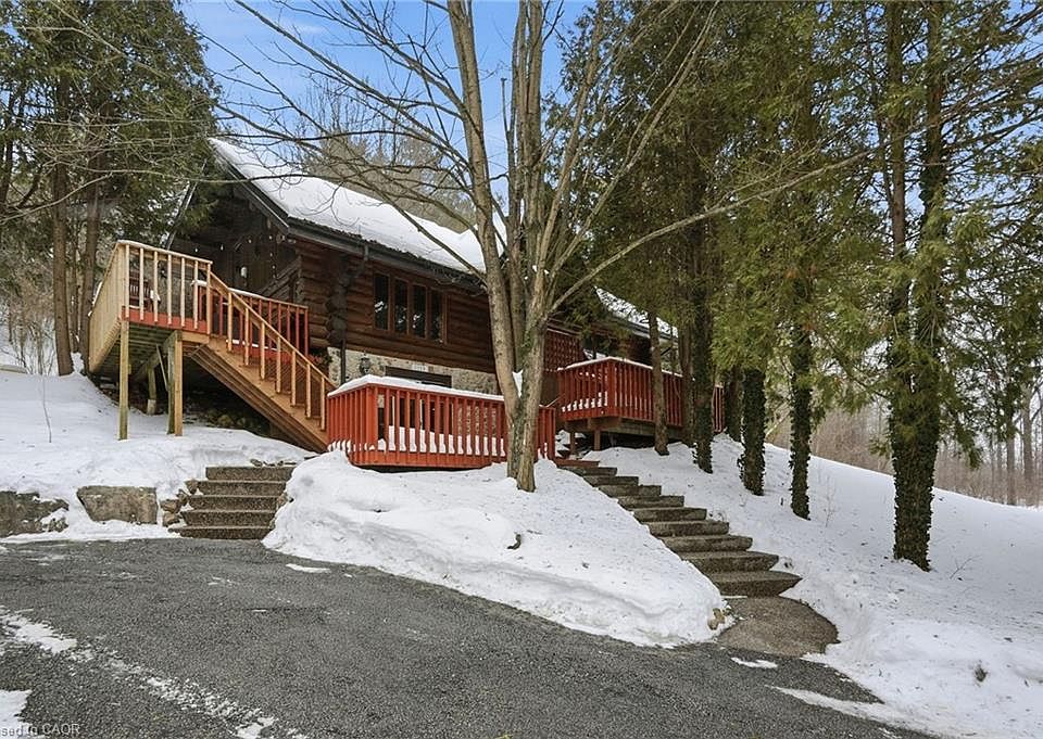 Introducing this beautifully crafted 1,771 square foot log bungaloft offering the perfect blend of rustic charm and modern comfort in a peaceful country setting. Soaring vaulted ceilings with exposed log beams create a warm and inviting first impression in the massive living and dining area, complete with a cozy gas fireplace. The spacious kitchen features abundant counter space and overlooks the welcoming family room warmed by an Elmira wood stove, ideal for gatherings year-round. Step outside to enjoy two separate decks, one off the family room and another off the kitchen, perfect for entertaining or relaxing in nature. The upper-level primary retreat offers a generous walk-in closet; large enough to double as a nursery or home office and a beautifully renovated ensuite with dual vanities and a glass-enclosed shower. The finished walk-out lower level adds exceptional living space with two well-sized bedrooms, an updated 3-piece bath and a comfortable rec room with its own gas fireplace. Outdoors, you’ll find a detached single-car garage, a charming chicken coop and a powered shed with 100-amp service—originally planned as a home office. A concrete pad is ready for your future hot tub, while walking trails right at your doorstep complete this serene and private country lifestyle. This is more than a home—it’s a retreat. Don’t be TOO LATE*! *REG TM. RSA.