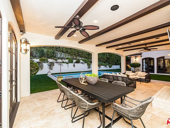 Beautiful gated ultra-private estate located North of Sunset on one of Beverly Hills' most famous celebrity streets. This newer construction home was built in 2007 and underwent additional renovations to add further upgrades in 2014. 6 bedrooms, 5.5 baths, screening room, and two first floor bonus rooms which can be used for gym/office or whatever one desires. Almost every entertaining room in the house opens to a beautifully manicured and landscaped yard with outdoor living room, kitchen and a sparkling pool & spa. Features include gleaming walnut floors, custom wall paneling, and amazing custom details throughout with a stunning chef's kitchen that opens into a cozy family room. The property has four fireplaces, a 3-car garage + 1 carport + gated parking for at least 4 additional cars. Privacy, serenity and luxury are all rolled into one perfect home minutes from the heart of Beverly Hills shopping & dining.
