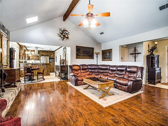 This great one story ranch style home home in Benbrook is located in a much desired are near the Benbrook Lake. Large open living room with new flooring, vaulted ceiling, with a skylight for natural lighting and wood-burning fireplace is open to the dining area and kitchen. Split bed rooms with Master on one end of the home and the other two down the hall. Large backyard with gorgeous 10 foot deep gunite pool, covered patio and an extended open patio area. Wrought iron and wood fences. Very large mature tree in front yard. 2 car garage with opener.