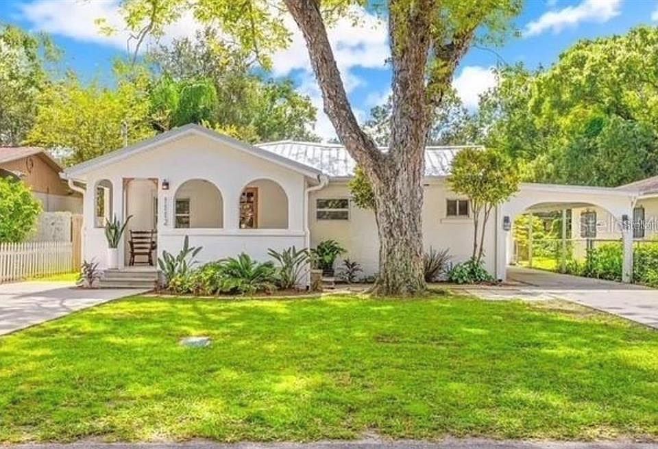 Beautifully updated Spanish-inspired bungalow nestled in Tampa's sought-after Lowry Park neighborhood. Originally built with character and charm, this stunning home was thoughtfully renovated in 2021, blending timeless appeal with modern updates. Featuring a durable and stylish metal roof, this home offers both peace of mind and lasting curb appeal. Inside, you'll find a spacious open-concept layout that includes two bedrooms and two full bathrooms across approximately 1,600 square feet of thoughtfully designed living space. Vaulted ceilings and large windows flood the interior with natural light, while luxury vinyl and tile flooring create a sleek, cohesive look throughout. The living and dining areas flow effortlessly into the modern kitchen, which boasts stone countertops, updated appliances, and a comfortable space perfect for cooking and entertaining. A split-bedroom floor plan offers privacy with the primary suite equipped with a walk-in closet. Additional features include ceiling fans, custom window treatments, and a full laundry area with washer and dryer included. The exterior of the home is just as impressive with a driveway and a two-car carport providing plenty of parking. The generous 6,600-square-foot lot offers ample outdoor space to garden, entertain, or simply relax. Ideally situated just minutes from Zoo Tampa, Seminole Heights, and less than five miles from downtown, this home provides the perfect mix of suburban comfort and urban convenience. Whether you're heading to the city or the beach just under an hour away you'll enjoy easy access to the best of the Tampa Bay lifestyle. Stylish, solid, and move-in ready, this home is a rare find in one of Tampa's most vibrant and established neighborhoods.