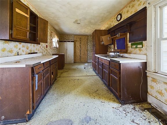 Attention Investors! Opportunity is knocking—time for you to answer the door. This two-story home offers 1,056 square feet of living space, featuring 4 bedrooms and 1 bathroom, ideal for families or renters seeking room to grow. The large kitchen, perfect for renovation, provides ample space for meal prep and storage, while the washer and dryer are conveniently located within the kitchen for ease of use. Adjacent to the kitchen is a separate dining room. From the dining room, step into the spacious living room, a central gathering place with plenty of potential for a cozy and inviting layout. The property includes an attached 1-car garage for added convenience, and the home is built on a basement, offering additional storage. While the home will need extensive renovations to restore its full potential, some major updates have already been taken care of. A durable metal roof was installed in 2019, the exterior features low-maintenance vinyl siding, and vinyl replacement windows were installed at some point. The home is heated by a high-efficiency furnace, ensuring comfort and energy savings. With the right vision and renovations, this property has the potential to become a fantastic addition to any investment portfolio. Don’t miss out on this promising opportunity—schedule your showing today and unlock its potential!