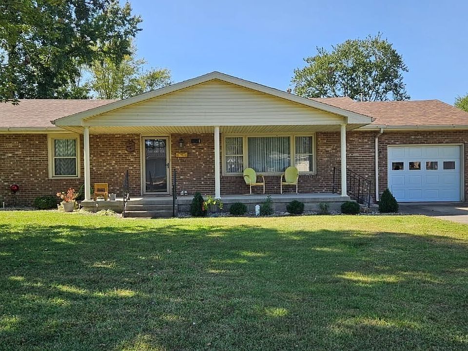 Welcome to this beautiful 3-bedroom 2-full bath brick ranch nestled in a highly desirable neighborhood with minimal traffic- perfect for peaceful living. New Roof as of October 2025. Step inside to find a warm and inviting living room featuring a cozy fireplace, ideal for relaxing evenings at home. The home also offers an updated full bath and a spacious family room, giving you plenty of space for entertaining or unwinding. Enjoy the custom kitchen with space for everyone. The front and back porch is covered so you can sit and enjoy the rain or barbecue year-round. The property also has a 1 car attached and 1 car detached garage for easy parking and added storage.