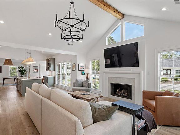 This beautifully renovated 3-bedroom, 2.5 bath home blends timeless charm with modern design. The spacious open floorplan features vaulted ceilings and abundant natural light throughout the main living areas. A chef's dream kitchen includes premium KitchenAid, a beverage center with wine fridge and drink cooler—perfect for entertaining. The cozy family room boasts a gas fireplace for relaxing evenings. The luxurious primary suite offers two closets, dual vanities, a freestanding soaking tub, and a walk-in shower. Enjoy the outdoors with a lovely private yard and patio. Includes a detached one-car garage. Ideally located—walk to Person Street, and just minutes from Iron Works, Five Points, and Downtown Raleigh!