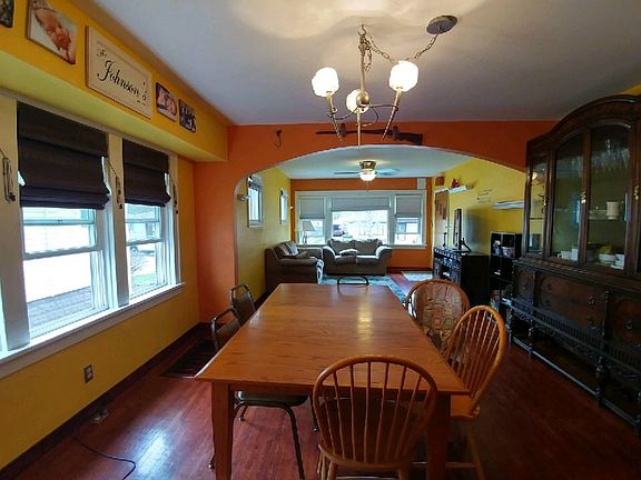 Raised bungalow with enclosed front porch. Open concept with hardwood floors in kitchen, dinning room and living room. Carpet in bedrooms. Unfinished basement 2 car garage