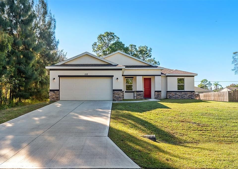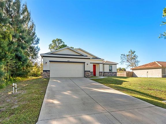 Step into this stunning 3-bedroom, 2-bath home that still smells brand new! Enjoy peace of mind and energy savings with fully PAID- OFF SOLAR PANELS, a whole-home water softener system, and hurricane shutters for added protection. Inside, you’ll love the luxury vinyl plank flooring throughout.......no carpet anywhere! The kitchen and bathrooms feature beautiful granite countertops and modern finishes. Sitting on almost a ¼-acre lot with no HOA, this home offers freedom and space to enjoy the Florida lifestyle. Added bonus.... Tesla charger in the garage!! Conveniently located near shopping, dining, and major roadways. This move-in ready home is truly a must-see!
