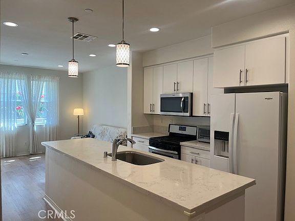 Welcome to this light-filled, contemporary townhome built by Olson Homes—perfectly situated for convenience and lifestyle. Located in a highly desirable area with easy access to major freeways, shopping centers, grocery stores, restaurants, schools, and just minutes from the Metrolink station. Inside, you'll find a spacious 3-bedroom, 3-bath layout thoughtfully designed for versatility and comfort: Two ensuite bedrooms on the third floor, each with walk-in closets. One additional bedroom and full bath on the second floor—ideal for guests or home office. The chef’s kitchen boasts crisp white quartz countertop, sleek stainless steel appliances, and upgraded soft-close drawers, all flowing into an airy open floor plan with wide wood plank flooring—an entertainer’s dream! Unwind on your private balcony, perfect for morning coffee or evening relaxation. Plus, enjoy the convenience of In-unit laundry room, direct-access tandem 2-car garage, unassigned guest parking permit and community amenities including EV charging stations and BBQ area.