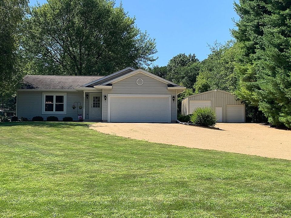 Rural Clinton Wisconsin - 3 bedroom and 2 bath main level + bonus room w/walk in closet in basement. Master bedroom and bedroom #2 up have walk in closets, attached 2 car, Eat-in kitchen with pantry, first floor laundry. Lot is 1.11 acres and the house is approximately 1500 sq ft., 26x32 heated shop and yard shed. Many recent upgrades (windows, patio door, garage door, kitchen countertops, garbage disposal, pressure tank, water softener and both baths) showing by appointment only, contact phone #1-815-871-6924