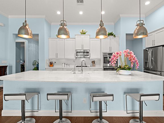 This LAKEFRONT POOL HOME sits on one of the BEST LOTS in Tradition offering real no filter SUNSET VIEWS, HEATED POOL & SPA, and a PRIVATE CUL-DE-SAC location on sought-after Vitalia Court, originally planned as MODEL ROW. Built in 2016, 3 BEDROOMS, PLUS a DEN, and 3 FULL BATHS and enjoy TWO PRIMARY SUITES on each wing of this home, CBS secured with IMPACT GLASS windows, and UPGRADED FLOORING throughout. The open layout highlights long lake views and effortless indoor-outdoor living. Enjoy a PRIVATE BRIDGE TO THE CLUBHOUSE and access to resort-style amenities. LOW INSURANCE & the HOA includes CABLE, INTERNET, ALARM, LAWN CARE, GYM, TENNIS, PICKLEBALL, POOL & MORE. Close to CLEVELAND CLINIC, TRADITION SQUARE, shopping, and 35 MINUTES TO THE BEACH. Located in a premier 55+ gated community