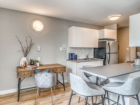These open-concept studio, 1- and 2-bedroom suites are stylish with beautiful plank flooring, bright kitchens, and stunning bathrooms, all topped off with quality finishes. This pet friendly building boasts onsite laundry facilities as well as outdoor and covered parking.
