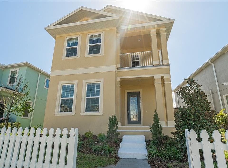 Be the first to own a spankin' new, home in Winthrop Village, Riverview's UNIQUE new urban design neighborhood. This NEVER-OCCUPIED residence, just completed, boasts open-plan first floor with lofty ceilings. Gleaming countertops, tile flooring, walk-in pantry, gas stove, microwave, dining area, large office/den, half bath, storage space galore. Detached two-car garage, alley-accessible, offers change from the typical Florida style. (Shouldn't homes be built for people not vehicles?). The second floor en-suite bedroom with tray ceiling, large walk-in closet, great bathroom with tile walk-in shower, spa tub, two-sink vanity, linen closet and under-counter storage space. Wonderful second-floor balcony from which to sit out and survey the lay of the land. Two other bedrooms with ample closet space. Hall bathroom with shower/tub combo. Expansive community pool along with outdoor grill and well-equipped recreation center. Kiddies' playground, dog-walking spaces plus conservation areas where lucky Sand Cranes alight and grass-nibbling rabbits hang out in plain view. Unwind on either front or back porch. Ditch the car and walk to the nearby Winthrop Center boasting an array of shops and restaurants including Publix and Starbucks. No worries knowing you have an inclusive homeowner's warranty inside and out! Metal storm shutters for all windows and doors. Come tour this fantastic property and see for yourself this modern development with an old-timey neighborhood ambience.