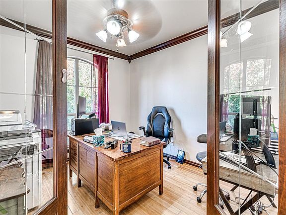 Inside, you’ll find airy 11-foot ceilings and bamboo flooring throughout, with elegant tile in the bathrooms. The gourmet kitchen features granite countertops, stained cabinetry, stainless steel appliances, Double oven and a walk-in pantry—perfect for any home chef. Bathrooms and the laundry room are also beautifully finished with granite countertops.