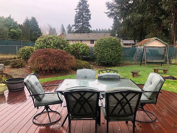Very well maintained rambler home, with tiled entry, and beautiful hardwood floors throughout. Upgraded kitchen with updated counter tops and cabinets, stainless appliances, new vinyl window, wood burning fireplace in the living room, master bedroom with great closet space, recently updated bathrooms, covered front porch, fully fenced backyard with patio, and two car attached garage. Complete security system included. Home is close to JBLM, and within Steilacoom School District. Tenant's income must be at least 3x rent price Any pets case by case