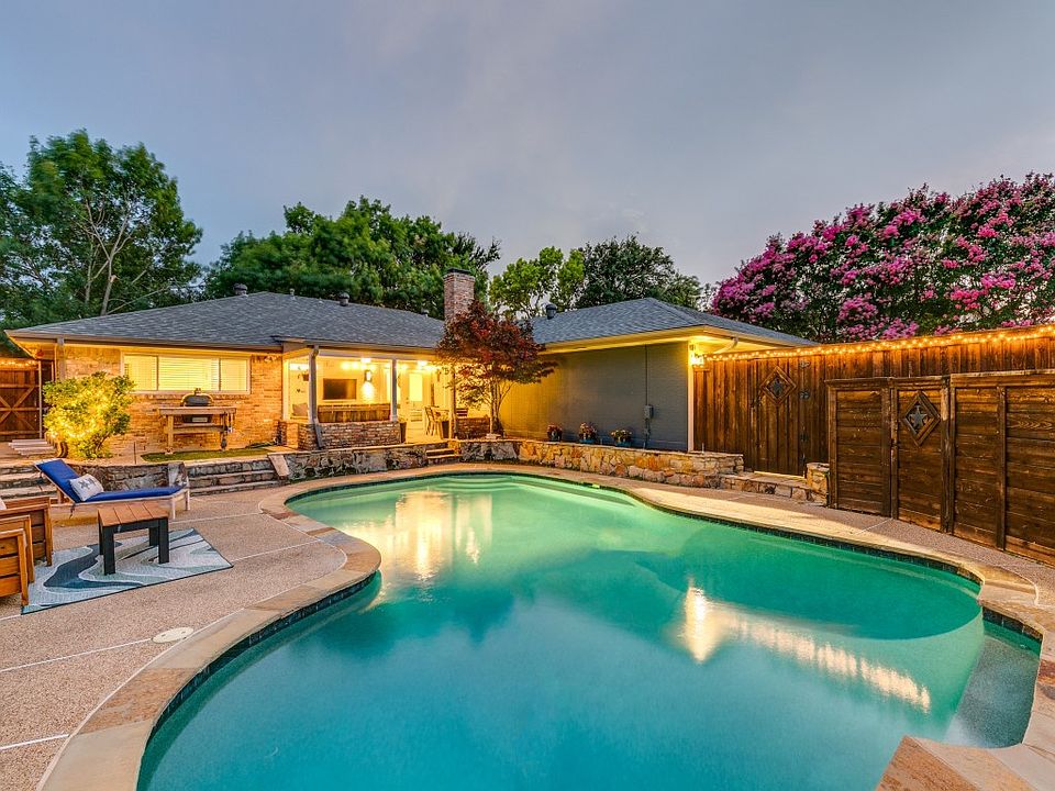 MULTIPLE OFFERS RECEIVED. DEADLINE TO SUBMIT IS MONDAY AT 12:00. Beautiful abode in Lake Highlands, boasting 4 bedrooms and 3 bathrooms, along with an oversized garage with 3 additional parking spots behind the garage. Its ideal floor plan features a Mother-in-law suite on one side, while all other bedrooms grace the opposite wing, ensuring privacy and harmony. With its open floor plan and vaulted ceilings, this home exudes spaciousness and elegance. Step outside to discover a serene and private backyard, complete with a large covered outdoor living center and a magnificent pool, recently resurfaced in pebble tec. Plus, enjoy peace of mind knowing that the roof has been replaced and the AC updated in 2020, adding to the allure of this enchanting dwelling.