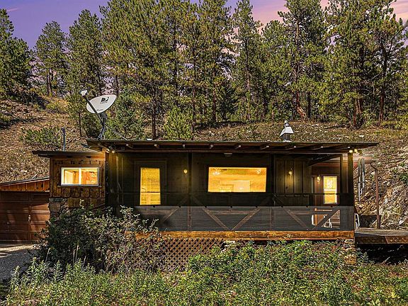 Well-maintained & upgraded home has a beautiful park-like front yard with a creek, many trees, and a large circular driveway with plenty of parking. Inside this well-insulated home (done by current owner) you will find a spacious kitchen with hardwood cabinets, high-end laminate countertop, including lots of storage. In the living room is a stone fireplace with gas insert which has been used to heat to entire home. In addition, there is electric baseboard heating - two sources means warmer winters & back-up safety! In addition, there is RV parking right behind the home with all attachments available for storing & maintaining your RV! Home has been thoroughly insulated including complete sealing of the crawl space. Wiring upgraded to 200amp with 50amp hookups for hot tub and RV on exterior. High-speed fiber-optic internet available through Mountain Broadband (very reliable). Addition added by current owner (primary bedroom & large walk-in closet) Attached single-car garage with epoxy flooring. Location just off a main road means very little snow removal by mountain home standards! Public-maintained Twin Spruce Rd with close & easy access to Hwy 72 and down to Arvada. Walk to Canyon Coffee, Hair Salon, Sinclair convenience store, and more. Just minutes to Golden Gate Canyon State Park! Would make either a great full-time home or summer/weekend second home! Zoned A-1. See supplements for A-1 Zoning in JeffCo (Agricultural).