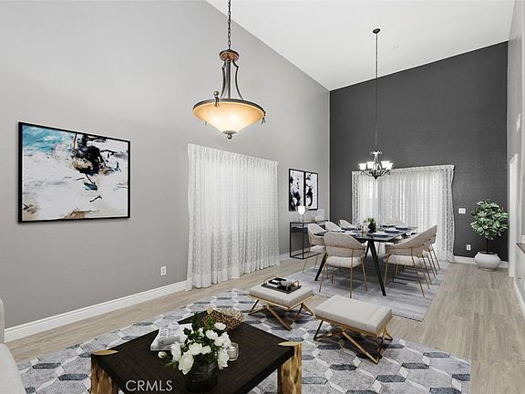 Welcome home to this two-story stunner situated on a tree-lined street in the La Sierra neighborhood of Riverside. With 2,217 square feet of living space, this newer home boasts 3 bedrooms and 2.5 bathrooms, accompanied by a 2-car attached garage, all set on a 6,970 square foot lot. Upon entering, you are welcomed into the inviting formal living room and formal dining where you can appreciate the soaring high ceilings and tons of natural light flooding in. The beautiful kitchen is the heart of the home and is sure to impress with its beautiful granite countertops and center island with garden sinks and views of the serene backyard. A spacious family room with a cozy fireplace awaits, providing the ideal setting for hosting large gatherings and creating lasting memories. Completing the main level is a powder bath, conveniently situated for guests and the door that leads you to the garage with laundry hookups. Venturing upstairs, discover three generously proportioned bedrooms and 2 full bathrooms. The expansive primary suite is truly captivating, highlighted by a walk-in closet and an ample bathroom featuring a walk-in shower, a separate soaking tub, and dual sinks. The secondary bedrooms share a well-appointed hallway bathroom with Jack and Jill sinks and a privacy door for the shower-in-tub combination and toilet. Step outside to a sprawling backyard, offering vast potential for a pool, spa, garden, and so many other possibilities. This outdoor haven features a large concrete pad, lush green grass, and two sheds to house your landscaping essentials. This home is located in a wonderful, family-friendly neighborhood, close to La Sierra University, Tyler Mall, several parks, walking trails, schools, shopping, entertainment with easy access to the Metro Link and freeways. No HOA or Mello Ros!