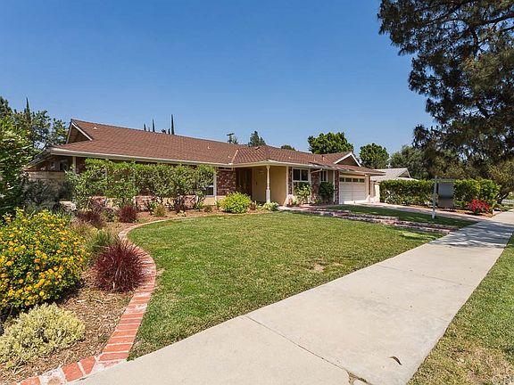 A quiet tree lined street leads up to this beautifully updated 4 bedroom, 3 bath Porter Ranch home situated on a 11,001 square foot lot. The well-manicured grounds in front are highlighted by a paver driveway and used brick accents. A leaded glass front door leads to a spacious tiled foyer & beyond. An updated ½ bath just off the foyer is directly accessible to bedroom #1 as well. The completely redone kitchen with custom cabinets, tile flooring and quartz counter tops has been equipped with many amenities such as an additional vegetable sink, filtered instant hot water and specialized storage. There is a large dining area and counter space abounds with the oversized center island. Perfect for any sized gathering. The all season sun room has tinted windows and is equipped with its own heating/air conditioning unit. Step down in to the living room and enjoy a crackling fire in the fireplace then retire to the library to enjoy a good book or… it could be a 5th bedroom! Bedrooms #1, 2 and 3 have custom closet organizers and ceiling fans. The remodeled full bath has a custom vanity & tile work. The spacious master ensuite has sliding glass doors leading to the backyard for easy access to the spa & pool. The master bath has custom vanity, towel warmer & glass enclosed shower with body jets. The tile work creates a wow factor! Eight fruit trees compliment the mature landscaping and the pool, koi pond and built-in BBQ make for an entertainer’s backyard. Additional features include a finished garage, dual paned windows and copper plumbing.