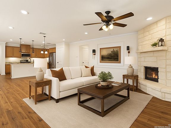 Take advantage of an incredible opportunity with a VA assumable loan at just 2.92 per cent-only $1,400/month with $19K down to assume! This 4-bedroom, 2-bath home offers 1,908 sq. ft. of comfortable living, built in 2021 and still in excellent condition. The spacious living area features a striking white rock fireplace as a centerpiece, paired with plantation shutters that add a touch of charm and privacy. The kitchen and laundry essentials are all included-refrigerator, washer, and dryer-making this home truly move-in ready. Outside, you'll find a 10x12 shed, perfect for seasonal storage or hobbies. Don't miss the chance to own this beautiful home with a low-rate VA assumable loan and thoughtful upgrades throughout.