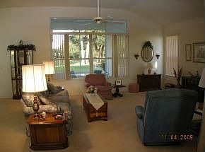 Hard to find 3 BR CAPISTRANO MODEL; Open Floor Plan. Great Position of the 17th Tee with Breathtaking view of the Golf Course from the screened lanai; Great Room and the Bay Windowed Dining area; Split Bedroom plan with French Doors to guest suite for privacy for you and your guests: perfect condition inside & out; Extras include Water Softener; Pull down stairs with floored storage over the garage.