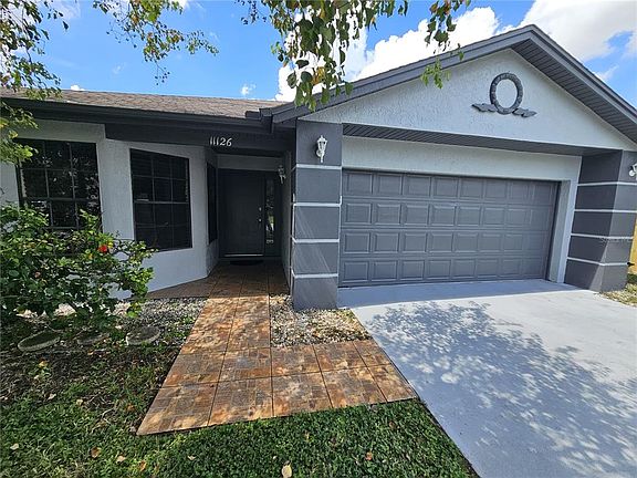 This beautiful three-bedroom, two-bath pool home offers 1,365 square feet of living space plus an additional 229-square-foot flex room by the pool, totaling 1,594 square feet. The home features wood laminate flooring throughout the bedrooms, kitchen, dining room, living room, and hallway, with ceramic tile in both bathrooms and the flex room. All stainless steel appliances, washer and dryer, fixtures, blinds, custom wood shelving in the garage, and an outdoor shed are included. Recent updates include a garbage disposal replaced in March 2025, a Trane air conditioning unit installed in July 2019, an electrical box replaced in March 2022, and an irrigation system for the entire garden replaced in June 2025. The pool has been resurfaced, with the lights and motor replaced in May 2024, and the exterior of the home was freshly painted in September 2025. A new fence and garage door were also installed in September 2025, while the roof was replaced in 2010. Conveniently located just minutes from major theme parks, shopping, dining, and with easy access to 528, 417, I-4, and the Florida Turnpike, this home is also near Orlando International Airport and 45 mins from beaches. This well-maintained property has been thoughtfully updated and was recently appraised at $400,000, making it a wonderful opportunity for its next owner.