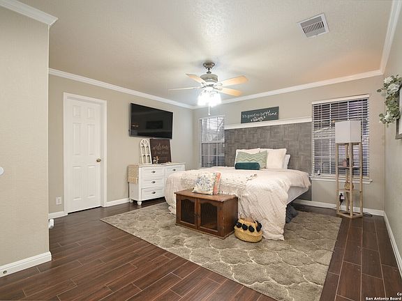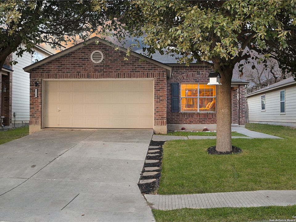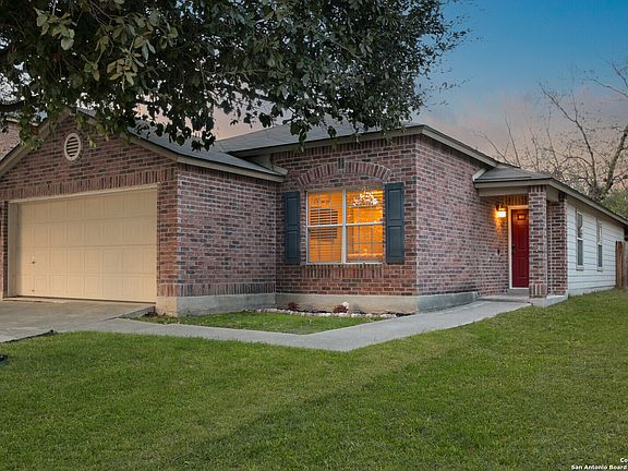 Welcome to this beautifully updated red brick home in the heart of the sought-after Bridgewood neighborhood. This 4-bedroom, 2-bathroom gem offers an open floor plan perfect for both comfortable living and entertaining. The versatile fourth bedroom, adorned with stylish barn doors, can easily double as a media or game room to suit your needs. The upgraded kitchen boasts a modern backsplash and flows seamlessly into the main living areas, creating a warm and inviting space. Updated light fixtures throughout add a touch of sophistication, while the brand-new HVAC system (with a 10-year warranty on both inside and outside units) ensures year-round comfort and peace of mind. Step outside to a covered patio in the backyard, ideal for outdoor grilling and gathering with friends and family. The 2-car garage offers plenty of storage, and timeless modern touches throughout the home finish off this perfect package. Located just a short walk from the neighborhood's basketball courts, soccer fields, and pool, this home combines convenience and community in one unbeatable location close to Lackland AFB. Don't miss the opportunity to make this your next home!