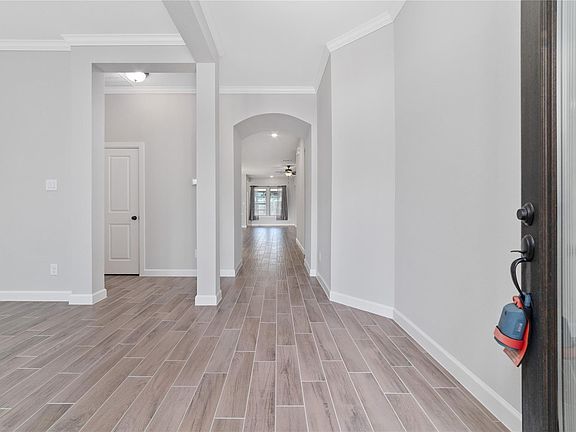 Well-maintained 3 bedroom, 2.5 bathroom David Weekley Home in the Towne Lake community. Bright and inviting interior features crown molding, light wood flooring, and plenty of natural light throughout. The formal dining room offers a great space for entertaining. The kitchen includes granite countertops, dark wood cabinetry, and opens to the breakfast area and spacious living room perfect for everyday living and gathering. A built-in planning desk at the back of the home provides a convenient space for a home office or craft area. The private primary suite includes a spa-like bath and a generous full-entry closet. Enjoy outdoor living on the large covered patio with recessed lighting. Community amenities include private and public boat docks, Lakehouse, fitness centers, parks, walking trails, a resort-style pool, and a 1.5-acre island with beach and picnic areas.