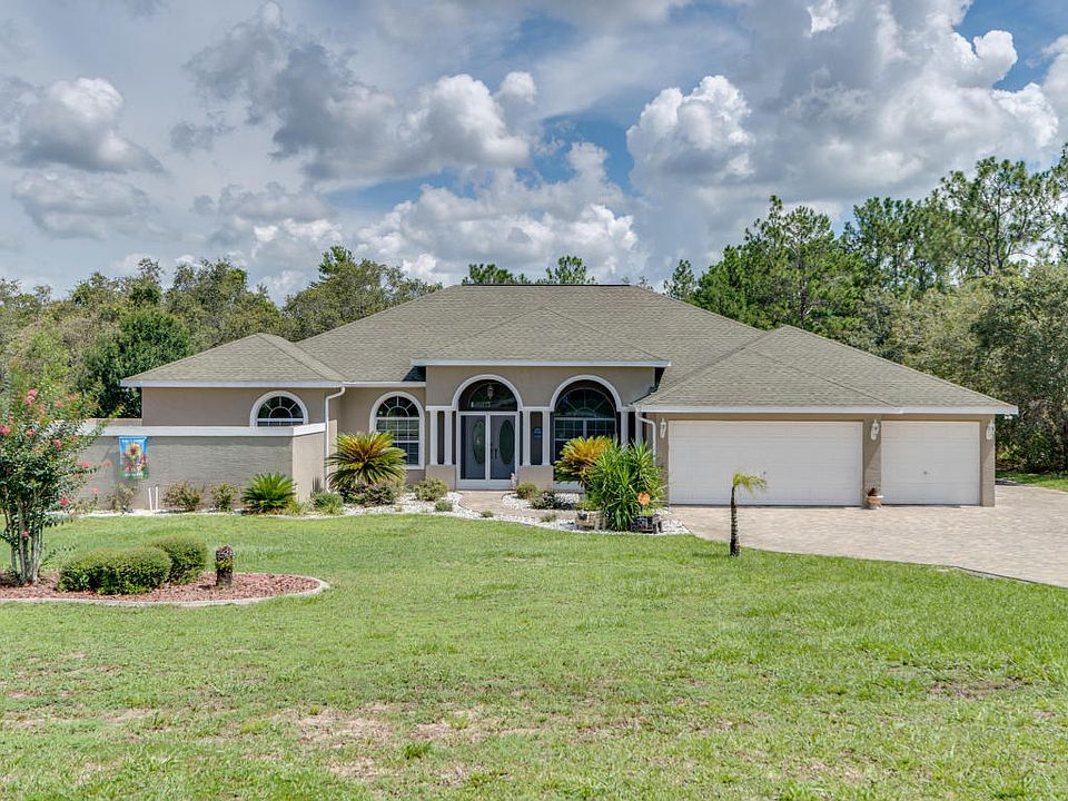 TAKING BACK UP OFFERS, Room 2 Roam inside & out!3389 sqft .82lot 4BR+office/3baths/5CG with dual door entry, cathedral ceilings & 18'' tile throughout. Formal LR & DR. Updated Kitchen w/stainless appliances, granite counters & HUGE walk-in pantry. Master Bedroom suite has garden tub and walk-in snail shower plus private garden patio area w/outside electric hookup for spa. True In-law suite has loaded kitchen, LR & large bedroom. Entire rear of the home has glass pocket sliders leading out to the sparkling self-cleaning pool w/stone waterfall. Oversized lanai adds plenty of outdoor living space. 900sqft. det drive thru 2 car garage (mancave) comes with a lift,80 gallon compressor & office. Completely PVC fenced yard. Room for all your toys with no deed restrictions. Fully Repaired Sink