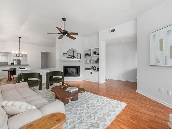 Welcome to your private retreat in the heart of Onion Creek! This beautifully updated condo sits on an oversized corner lot with open views of the golf course. Just steps away from the clubhouse, pickleball courts, and community pool. The fully fenced backyard features a spacious covered porch and a thoughtfully designed pollinator garden—perfect for relaxing or entertaining. Two magnolia trees in the side yard provide shaded space to unwind and enjoy the scenic golf course and clubhouse views. Inside, the 1,789 sq ft layout offers comfort and flexibility with two spacious primary suites, each with a private ensuite bath—ideal for multi-generational living or guests. The home is entirely carpet-free, with low-maintenance tile and luxury vinyl plank flooring throughout. The kitchen includes a large pantry, generous cabinet space and ample counter space— perfect for cooking enthusiasts. A versatile flex space can serve as a breakfast nook or small office. Additional features include: two-car garage, in-unit laundry and fireplace—offering the comfort and privacy of a single-family home with the convenience of a condo. Located on a quiet, private street with no through traffic, this home offers peaceful living with unbeatable access to all Onion Creek amenities.
