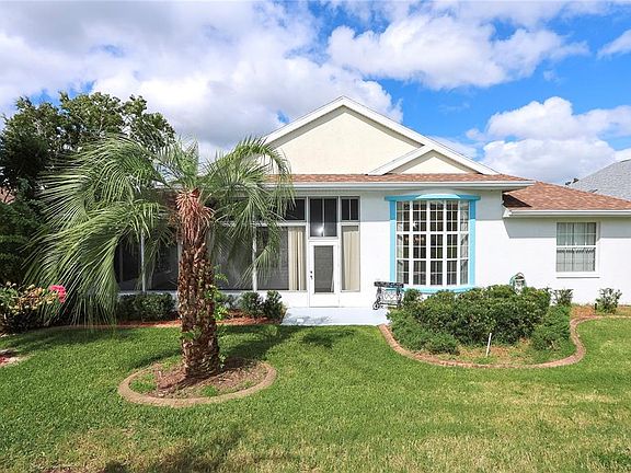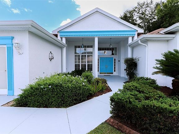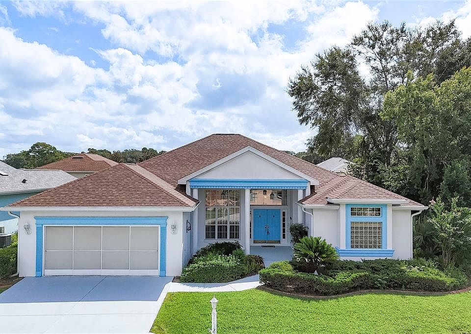 TAKE ANOTHER LOOK, NEW LOWER PRICE! This 3/2/2 very popular Monaco Model Home is located in the Fountains Neighborhood, close to Palm Grove Pool, Fitness and Golf Course. Welcoming covered front porch leads to double French Doors. As you enter, you notice that it is perfect for entertaining your guests, with an open floor plan, High Ceilings, custom cove moldings and separate Formal Dining Room. The spacious Living Room with plenty of windows, creates a light and airy feeling! No lack of storage in this kitchen with custom built-in wall cabinets and pantry. The split floor plan works well with the Primary Bedroom separate from the other 2 guest bedrooms, on the other side of the home. Laundry room with utility tub, just off the kitchen. Large 2 car garage. New Roof & AC 2023. Oak Run is a 55+ gated community that has 6 pools, 5 spas, 2 fitness centers, 3 clubhouses, Library, Billiards Room, Crafts and Card Room, Dog Park, Restaurant, Golf Course and Driving Range. There are many clubs to join. Community is conveniently located close to Medical Facilities, Restaurants and Shopping.