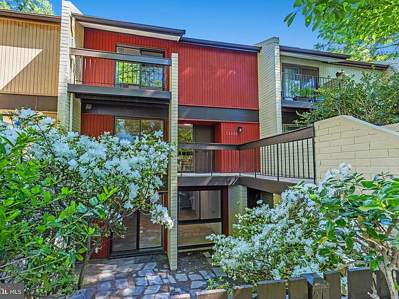 Rarely offered!! Mid-Century Modern Bridge Unit Townhouse offers comfortable contemporary living. Light and bright. Recently updated throughout. Entry level hall with built-in floor to ceiling bookcase, large coat closet, large walk in panty/storage closet, and updated powder room. The kitchen has quartz counters, soft close cabinets, all new stainless steel appliances, and floor to ceiling built-in shelves. The dining room is open to kitchen. Spacious family room with walk out to rear patio. Updated baths. Wood floors with a new finish on three levels, ceramic tile in family room. Primary bedroom with attached sitting room, walk in closet, and balcony. Enjoy outdoor living on two patios both front and rear. Backs to open common land. New Roof, and all windows replaced.