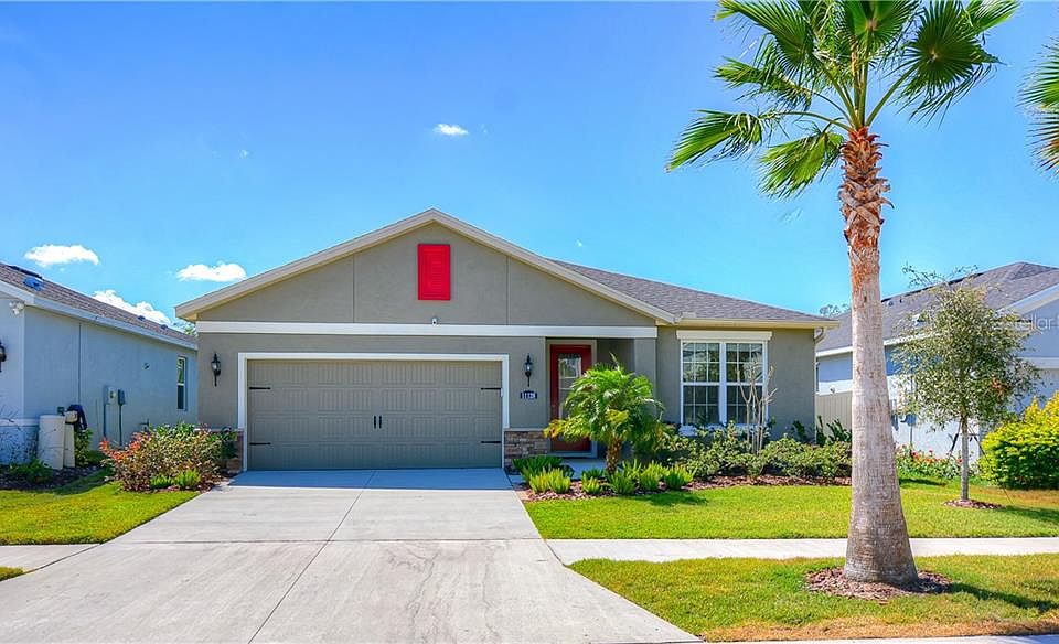 LIVE the GOOD LIFE in POPULAR LUCAYA LAKE CLUB! TAKE advantage of the VIRTUAL TOUR & WELCOME HOME to this SPECTACULAR 4BD/2BA/2CG RYAN HOME-Parkland Floor Plan Constructed in 2019(Elevation C which includes the brick in front exterior and interior a Highly Desired Spacious Split Bedroom and Open layout) You will Love how this Home Shines with Upgrades throughout to include 9'4" ceilings, LED lighting, fresh contemporary paint colors in every room, 18" X 18" Tiles laid in an Elegant Diagonal Pattern in Main Areas as well as Bathrooms, Kitchen and Great Room. Kitchen has Dark 42" Wood Cabinets, Stainless Steel GE Appliances and Frigidaire Refrigerator, Plus Granite Counters / Silestone Counter tops in the Bathrooms. Serene Exterior Offers Fully PVC Fenced Backyard Maturely Landscaped with several Palm Trees and a covered Lanai with Pavers extended to provide plenty of room for table, chairs, and endless possibilities for entertaining and enjoyment. Lucaya Lake Club Offers Resort-Style Amenities, Palm Tree Lined Streets, a 78-acre lake the center piece of the Community, Private Beach/Dock for Kayaking/Canoeing/Paddle Boarding, Clubhouse, 24 hr Gym, Walking Trails, Playground, Splash Park, and Swimming Pool with Cabanas. Situated near Interstate-75 and minutes to Tampa, Shopping, Restaurants. PERFECT PLACE TO MAKE THE MOVE AND CALL YOUR FUTURE HOME!