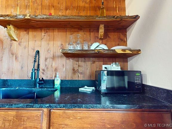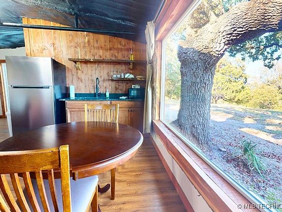 Discover peaceful cabin living tucked into the Arbuckle Mountains. Cabin 1 is a modern studio-style efficiency with an open layout, offering a seamless blend of living, sleeping, and dining space. The full bathroom is separate for privacy, and the cabin features a kitchenette with refrigerator, microwave, sink, shelving, and dining area. The interior is fully foam-insulated, providing exceptional sound reduction and energy efficiency quiet, cozy, and comfortable year-round. Large windows bring in natural light and wooded views, and a private porch allows you to enjoy the outdoors. All utilities are included, along with internet and lawn care, making this an easy, turn-key rental. Just minutes from local attractions, yet privately tucked away behind a gated entry.