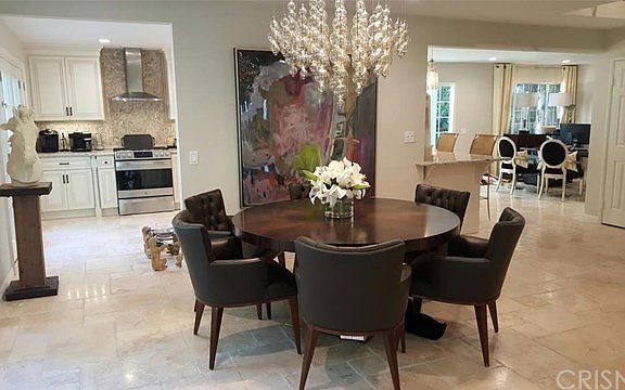 Living is easy, in this immaculate HGTV designed home. Nestled at the end of a cul-de-sac in Chatsworth's Heritage Estates, the double door entry draws you into a voluminous open floorpan contrived for entertaining! The remodeled Gourmet Kitchen with Stainless Steel Appliances (6 burner stove w/ lower warming drawer), Granite countertops, large seating island enhanced w/3 hanging pendant lights will inspire the inner chef within. You will fall in love with the Master Retreat's grand appearance cozy sitting area, high ceilings and "his & her" closets. The 2 person Jacuzzi tub and a stand alone glass shower with multiple massage jets, dual sinks w/ ample counter space makes this an ideal way to relax after a long day! Graced with soaring ceilings w/ recessed L.E.D. lighting, floor to ceiling windows, stylish Travertine tile, whole home water filtration system and a downstairs full bath gives this home the award for meeting a "Buyer's Checklist" for most desired features! The backyard is precisely landscaped and can be accessed from all sides of the home creating an open and airy flow. The pool and spa are wrapped between cascading hillsides with seasoned trees, colorful plants and drought resistant shrubbery maintained by a drip irrigation system.