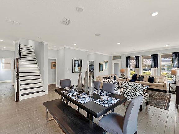 Under Construction. Waterleigh presents the Seacliff. This two-story all concrete block construction single-family home features 4 bedrooms and 3.5 bathrooms optimizing living space with an open concept feel. A beautiful porch welcomes you to this home, as you enter the foyer, you are greeted with a formal dining room. Customize this area to meet your needs with an optional den. Go down the hallway and you’ll find a powder room and laundry room tucked behind the stairwell leading up to the second floor. The well-appointed gourmet kitchen overlooks the casual dining area, family room and outdoor lanai. This home features a spacious kitchen island with built in sink and dishwasher to optimize counter space, and a walk-in pantry for additional storage. All homes in this community feature stainless steel appliances, making cooking a piece of cake. Bedroom one is located off the living space in the rear of the home for privacy. It's bathroom impresses with separate vanities, shower/tub space, toilet room with privacy door as well as a spacious walk-in closet. As you head upstairs, you are greeted with a loft area and three bedrooms. Two bedrooms share a upstairs bathroom with double bowl vanity while the additional bedroom is complete with ensuite bathroom. Like all homes in Waterleigh, the Seacliff includes a Home is Connected smart home technology package which allows you to control your home with your smart device while near or away. *Photos are of similar model but not that of exact house. Pictures, photographs, colors, features, and sizes are for illustration purposes only and will vary from the homes as built. Home and community information including pricing, included features, terms, availability and amenities are subject to change and prior sale at any time without notice or obligation. Please note that no representations or warranties are made regarding school districts or school assignments; you should conduct your own investigation regarding current and future schools and school boundaries.*