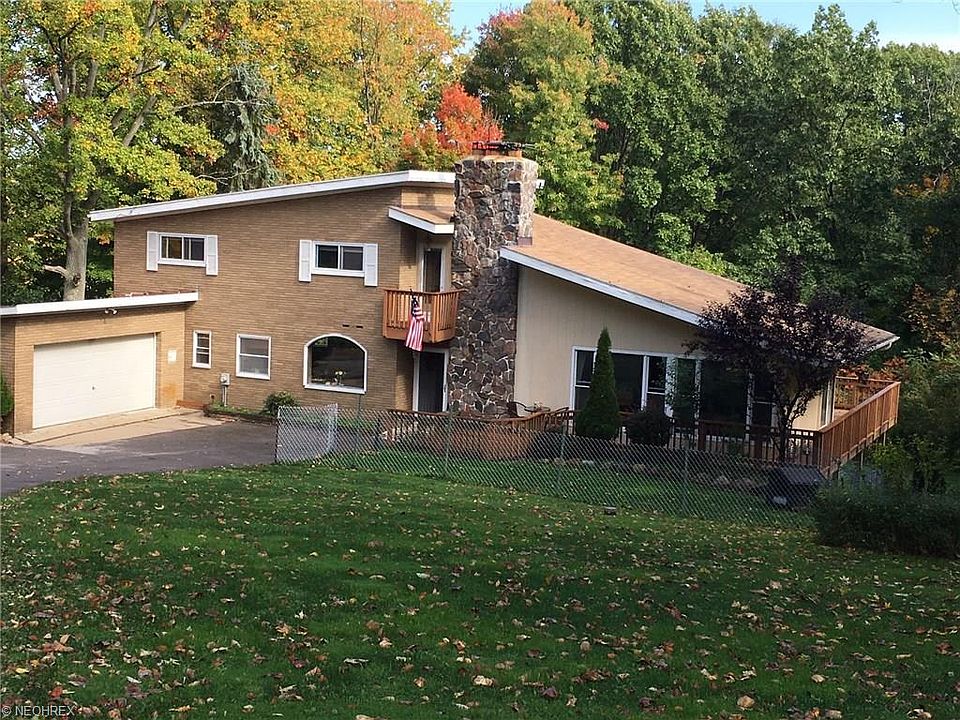This Brick Split mimics a Chalet in the Woods setting on an almost 2.5 acre park-like parcel. There is a 2 car side load garage. plus a second attached lower level garage. Many window views throughout the home. As you enter there is a 2 story Foyer featuring a 20 foot long spindled loft. A stone wall fireplace is located in the 22x26 Living room that has a Vaulted ceiling & glass slider. You can also access a 11x10 bedroom/office from hallway on the first floor with a half bath. Hardwood Flooring in all rooms on both levels. The oversized gourmet kitchen features Maple cabinets, spacious island to prep & serve from, built-in oven & stove plus an elevated counter bar adjacent to a large formal dining area. The second level offers 2 bedrooms with a full hall bath and master bedroom with a half bath. The lower level has a walk-out access and is finished with a full bath & wet bar. Take a look at this unique private property!!
