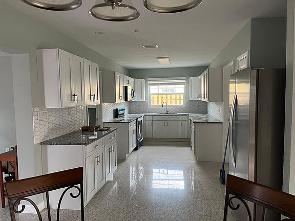 The home is newly remodeled. Kitchen has new cabinets, granite countertops and all new appliances. Family room has a fireplace. Polished terrazzo floors throughout the home. This is a beautiful family home in a lovely neighborhood. Please do not call after 5:30pm for inquires, thanks! Tenant is responsible for all utilities. Hook ups for washer and dryer are in the garage. Washer & dryer are not included. One small dog or cat is permitted with a $100 pet fee. Sorry, this is a non-smoking home