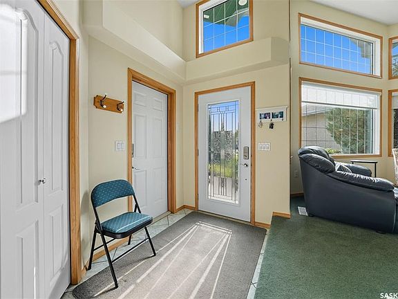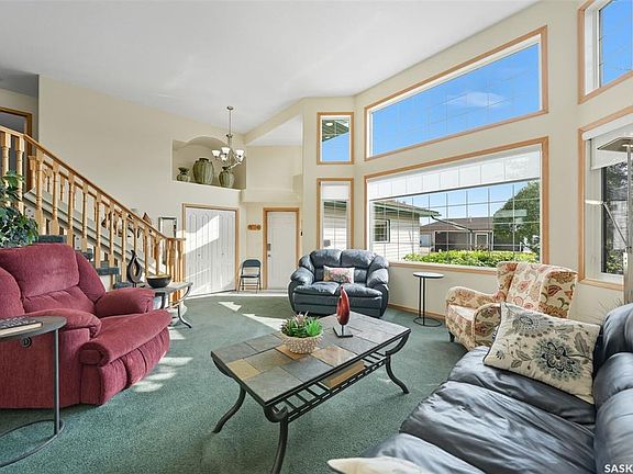 Welcome to this immaculate bi-level home, perfectly situated in a highly desirable neighborhood near the Uniplex, and a variety of amenities. Backing a peaceful tree line with open prairie views, this property offers a rare combination of privacy and convenience. Step into a bright and inviting main level, where soaring ceilings and floor-to-ceiling windows in the front foyer and living room create an impressive sense of space. Decorative niches and ledges add character and style as you move into the heart of the home. The well-designed kitchen features an abundance of white cabinetry, seamlessly connected to the dining area with access to a maintenance-free, two-tiered deck—perfect for entertaining or simply enjoying the outdoors. The main floor is complete with a luxurious primary bedroom with a 3-piece ensuite, an additional bedroom, and a 4-piece bathroom. The lower level continues to impress with a stunning decorative glass feature overlooking the main living room, a spacious family room with a cozy natural gas fireplace, two additional bedrooms (including one with a walk-in closet), and a 3-piece bath/laundry room with plenty of built-in cabinetry. Car enthusiasts and hobbyists will love the garage, outfitted with cabinets and Handiwall slatwall systems for exceptional organization. Outside, the beautifully landscaped yard showcases mature trees, shrubs, hedges, flower beds, fire pit area, storage shed, and a fully fenced design that backs onto green space. This property truly shines inside and out—showing 10/10 with pride of ownership throughout!