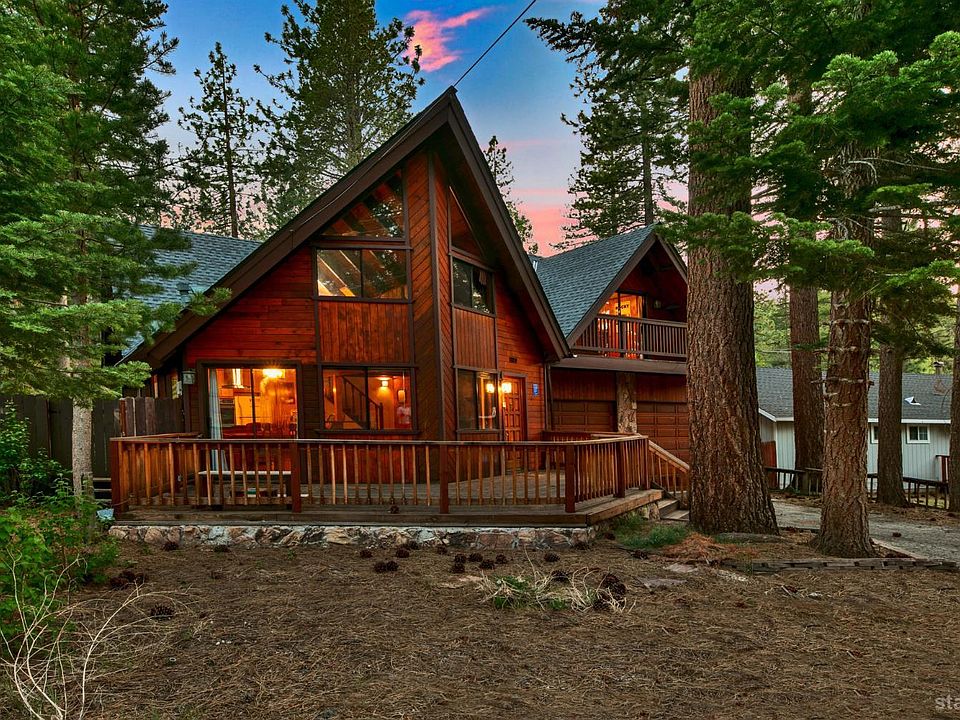 Discover this exquisite chalet-style home nestled on a sprawling 10,890 square foot level lot, offering privacy and serenity as it backs up to protected Conservancy land at Lake Tahoe. Recently enhanced with new 40-year warranty composition roof, this 2,172 square foot residence combines mountain charm with modern conveniences.Step inside to be greeted by striking vaulted timber-framed ceilings that create an expansive, airy atmosphere while honoring traditional alpine architecture. The recently rebuilt front and backyard decks provide perfect spaces for outdoor enjoyment, whether you're hosting summer barbecues or simply unwinding amid nature's beauty.The thoughtfully updated kitchen and bathrooms feature granite countertops and laminate flooring, seamlessly blending luxury with rustic mountain aesthetic. The functional first-floor layout includes a kitchen, dining area, two comfortable bedrooms, and a full bathroom, complemented by a convenient two-car garage.Upstairs, you'll find a spacious loft, two additional bedrooms including one large enough to serve as a game room, and a second full bathroom. With four bedrooms and two bathrooms total, this home offers ample space for family and guests.The location couldn't be more perfectly situated on a quiet street that ends at a scenic hiking trail leading through meadows to the Upper Truckee River. Enjoy immediate access to outdoor adventure while still being close to all Lake Tahoe amenities.This exceptional property presents the ideal balance of comfort, privacy, and natural beauty for your perfect Lake Tahoe retreat.