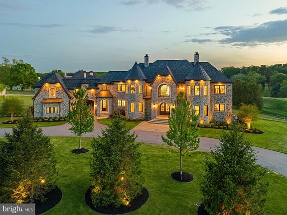 A truly one-of-a-kind offering. An incredibly rare and unique opportunity to own a masterfully curated and fully custom designed home in Baltimore County’s newest and most coveted enclave, Castanea Estates. A collective collaboration between Architect firm GBL Custom Homes, alongside Interior design by Bobbi Nock Interiors, this breathtaking residence offers 6 Bedrooms and 7.5 bathrooms throughout its 12,000 sq ft of living space. Upon approach, natural stone envelops the exterior and gives an organic modern castle like aesthetic. Timeless elegance welcomes you through the double door arched entryway into a grand foyer with a demanding sun-drenched view, flanked by classic checkerboard flooring, stunning archways and a double wrought iron wrapped staircase. This home has been exquisitely appointed top to bottom with various marbles, real hardwoods, Restoration Hardware & Visual Comfort lighting, along with a stunning Cristallo quartzite backlit island countertop at the center of the chef's Kitchen. A full-sized professional gym, wine room, butler’s pantry, wet bar, his and her separate lux primary suite bathrooms & separate walk-in closets, and a resort style custom pool & spa are just a many of the incredible luxury amenities this home offers. The vast exterior living space features a beautiful al fresco dining area, BBQ grill, and multi-level covered seating areas. The impressive resort style saltwater pool features waterfall gas fire bowls, tanning shelf, built in bar stools, and a separate spa that can operate all year round, even when pool is winterized. Every element of this residence has been meticulously considered to deliver a living experience of the highest caliber imaginable.