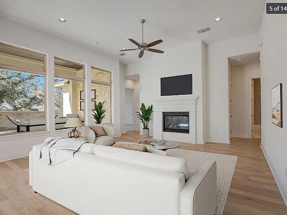 Gas log fireplaceOpen floor planStainless appliancesQuartz countertopsExpansive covered patioLarge islandAutomatic sprinkler system
