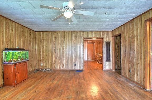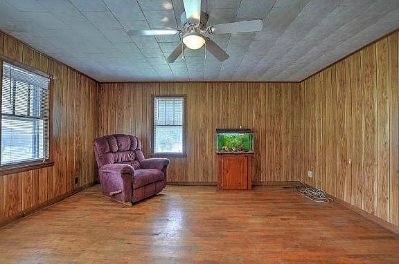 This home is ready for a new owner, Completely enclosed clover front porch. Large Living Room with original hardwood flooring, Bedroom off Living area. Open Kitchen with easy food prep pass thru area. All Appliances in home will transfer with the sale of the property. Larger bedroom has a huge walk in closet. Home has a laundry area and back porch with above ground pool area is fully fenced. This home is being sold as is where is. Owner knows of not issues with the property and was a rental for may years.
