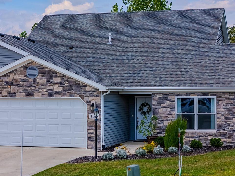 Beautiful Newer Customized 2 Bedroom, 2 Bath Villa Home with approx. 1,363 sq ft of living area in Chester Heights Subdivision. Close to walking trail, parks, schools and recreational facilities. This beautiful home features custom cabinets in kitchen, baths and laundry. Kitchen has premium stainless appliances and Microhood, 8" deep stainless steel kitchen Sink with upgraded kitchen faucet. Primary bath with 36" tall vanity with cultured marble vanity top 5' Walk-In Shower and walk-in closet. Great room has a high vaulted ceiling. Luxury vinyl plank flooring in the Kitchen, Dining, Laundry, foyer and both Baths. Carpeting in the living room and bedrooms. Upgraded lighting package throughout. Upgraded Interior door hardware. Wide painted trim and rounded drywall corners. 95% efficient gas furnace and central air with fresh air ventilation and programmable thermostat. 2 Car garage with upgraded finish and 30” pull down ladder for partially floored attic access. Exterior highlights include partial stone front, upgraded vinyl siding, architectural shingles, upgraded lighting, and landscaped yard with concrete drive. Relax on the rear patio with pergola. Water softener remains.