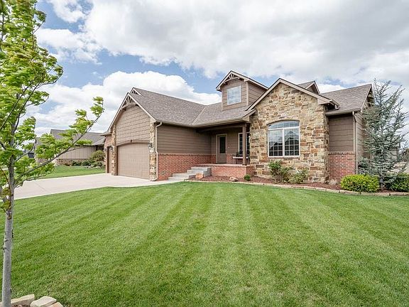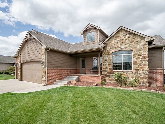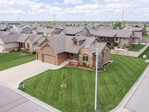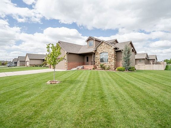 Exquisite doesn't even begin to describe this beautiful 4 bedroom, 3 bath home. When you walk inside, a grand foyer greets you with a 20 ft tall ceiling flanked by a large window to bring in natural light from above. Bring your eyes back down and you'll notice rich, handscraped hardwood floors and a spacious, open floor plan. Replete with elegant details throughout, features include wood blinds and a chef's kitchen with granite counter tops, while under-cabinet floor lighting in the kitchen and bathrooms, add distinction and enhance the mood in this warm and inviting home. You absolutely must pause your tour here for a moment and take a look at the garage, just off the kitchen. The garage has a gorgeous epoxied floor, is fully insulated, sheetrocked and trimmed with fine wood detailing, built-in custom cabinetry, sliding wood doors and even a large TV! This fantastic garage has nearly $25K in upgrades and doubles as an amazing man-cave! Back inside, you'll pass by the mud room and main floor laundry before continuing your tour in the master retreat, which features a spacious bedroom and ensuite bath with a jetted tub, separate shower, dual sinks and a large walk-in closet. The other three bedrooms are uncommonly large and feature walk-in closets. Navigate downstairs via the grand staircase complete with a lighted path, and you'll find a large family and game/rec area, a wetbar, tons of storage, another bathroom and even an unfinished 5th bedroom! Whether it's upstairs, downstairs, or out on the covered deck, you'll love hosting family and friends in your new home. All this and a neighborhood pool, fishing ponds, and located in the highly acclaimed Maize School District. This home will not be on the market long, so schedule a showing right now.